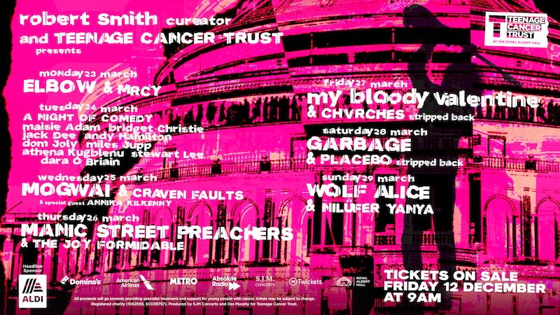 Mogwai’s Stuart Braithwaite said: “We are extremely excited and privileged to be playing at the Royal Albert Hall in aid of the Teenage Cancer Trust. It’s 20 years since we last played there and to be asked by Robert Smith is an honour as The Cure have always been a huge influence on our music.”
